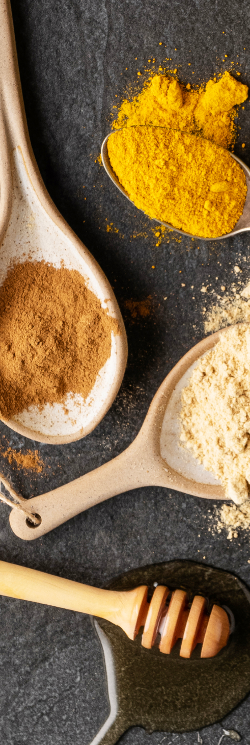 Below are brief nutrient profiles of Turmeric, Ginger, Cinnamon, Honey and Pepper, but don't take our we our word for it. For in-depth information please research the science behind the ingredients we have hand picked to make our Elixir.