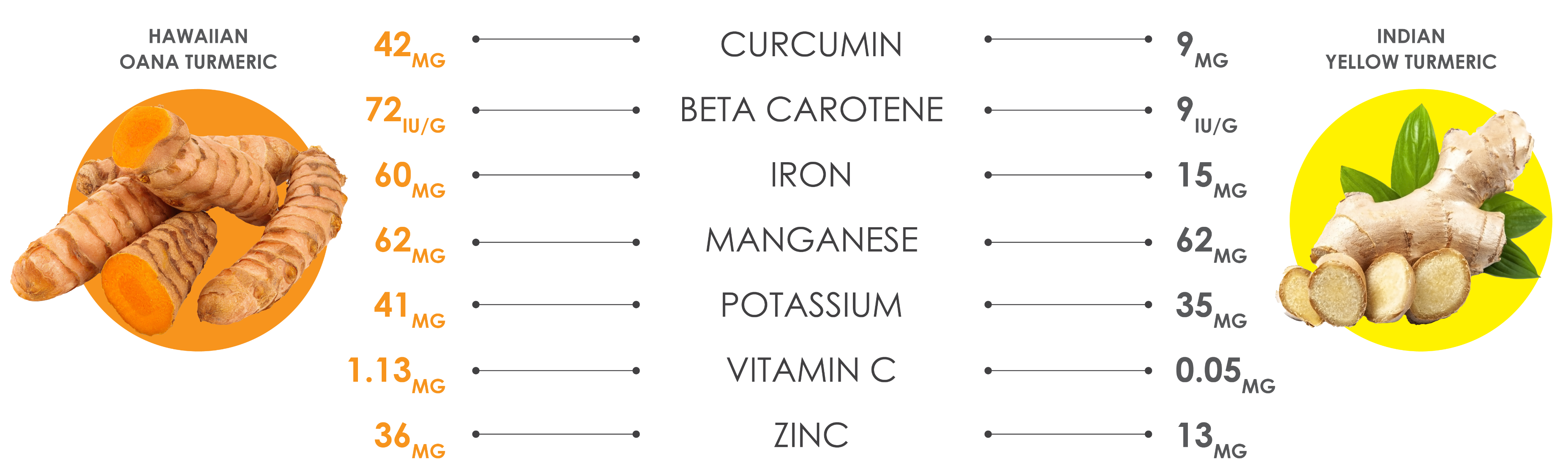- Phytonutrients including Curcumin, Demethoxycurcumin, Tumerone, and Tumenorols